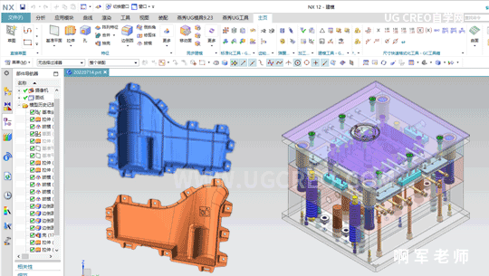 UG/NX塑胶模具设计视频教程案例-汽车储物盒模具视频教程UGcreo自学网